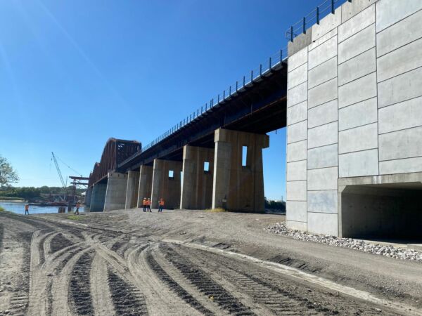 A key challenge for the Owner was maintaining rail service during construction. Given the high volume of freight traffic using the bridge, extended track closures were not a viable option. Completely removing and rebuilding the existing approach trestles would have taken the railroad out of service for months, resulting in significant economic impacts to the freight industry.