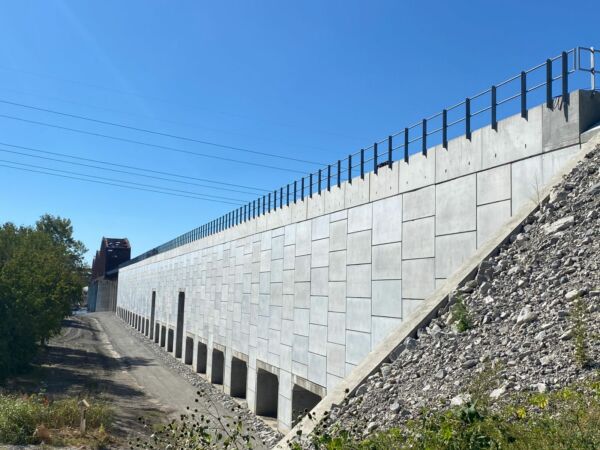 LDCC fill does not behave like conventional MSE wall select backfill, but the design and construction methods have been implemented on projects with Reinforced Earth wall material for decades. This solution provided substantial schedule and operational benefits for the Merchants Bridge project. Most importantly, it minimized railroad downtime while delivering a durable, high-performing structure.